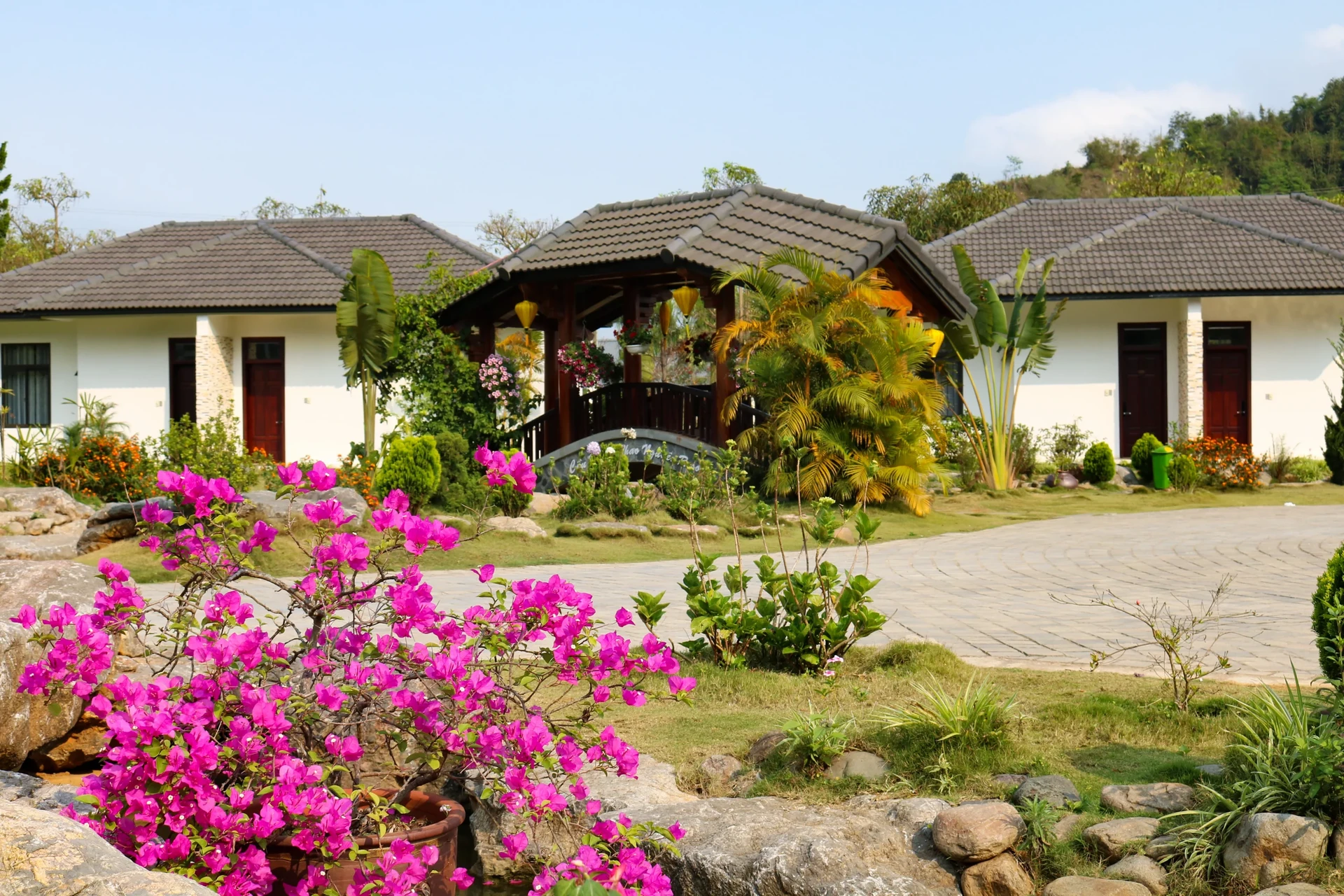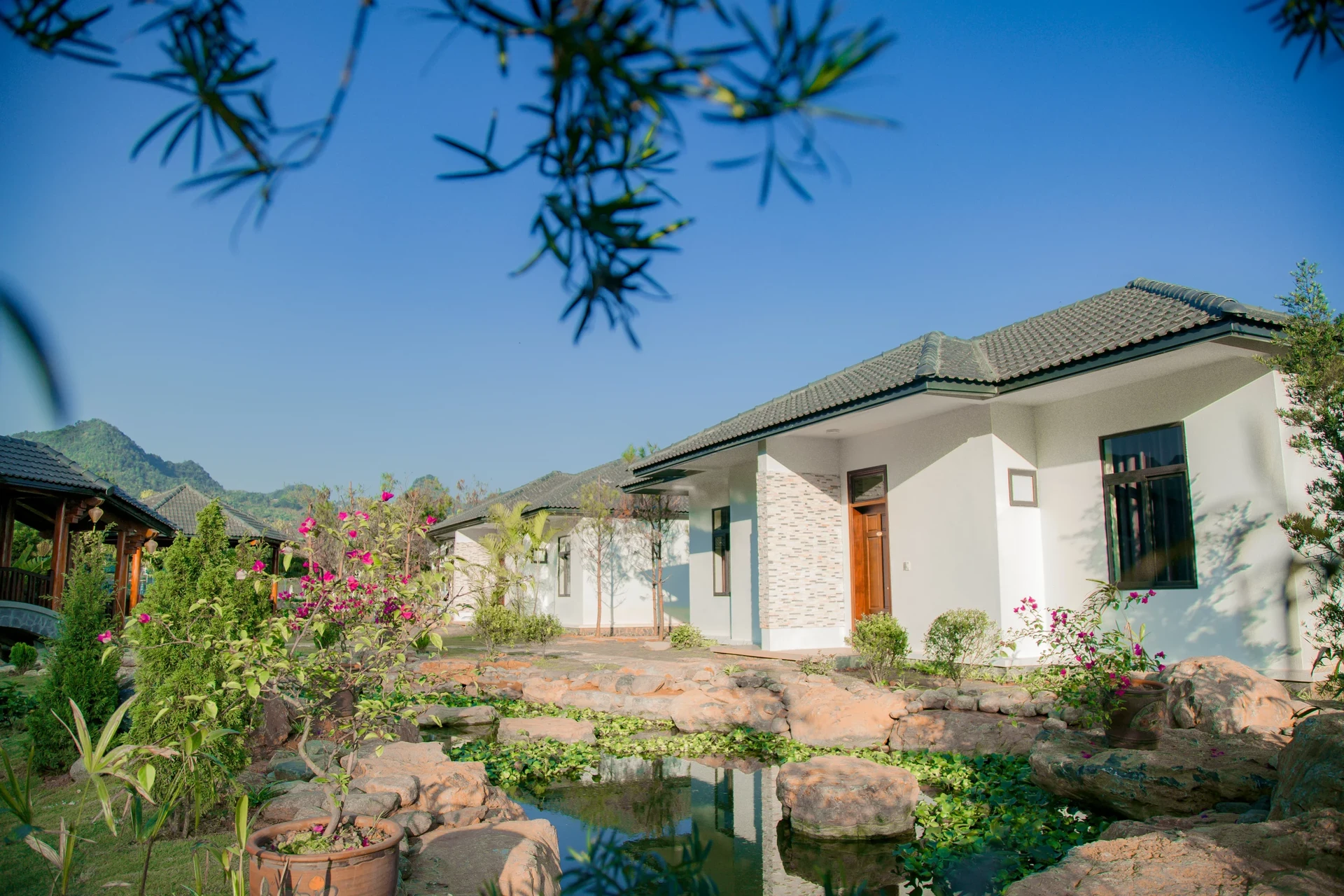- Villa & Bungalow: riêng tư, gần gũi, thiết kế gắn liền thiên nhiên với vườn hoa, hòn non bộ.